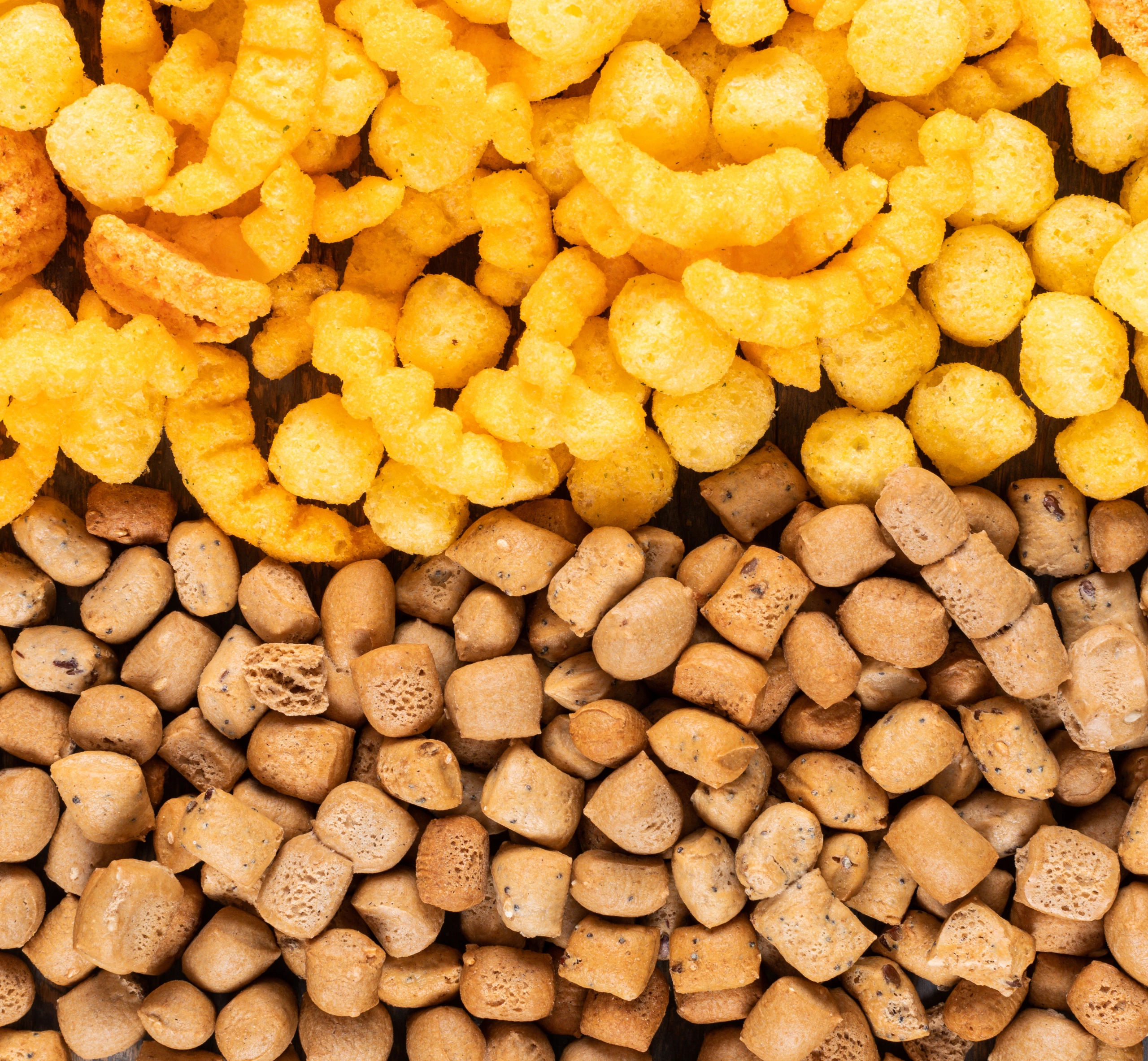 A wide selection of raw snack pellets in assorted shapes crafted for frying and flavoring, ideal for snack manufacturers and global bulk procurement requirements.